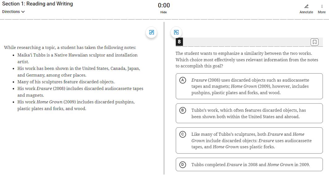 - An acceptable calculator for the Math section (Desmos will also be provided on Bluebook)